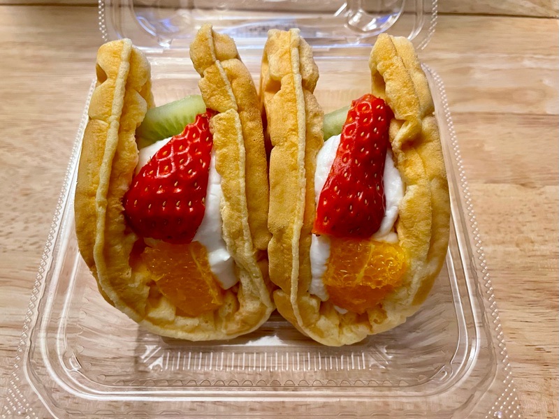 昨日腹ペコ状態で寄ったショッピングモールの食品売り場で、とーーっても美味しそうに見えたフルーツのワッフル。