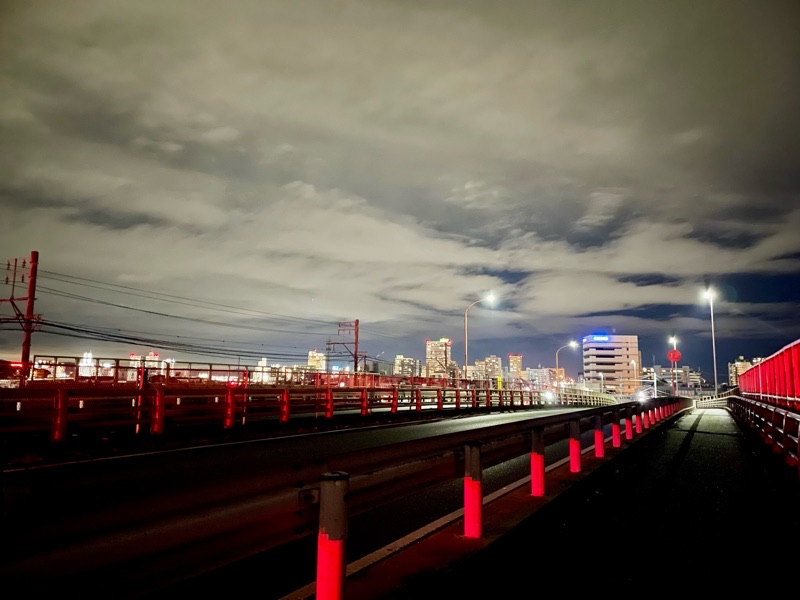 夜の冷たい風、通り過ぎる電車、車のライト。